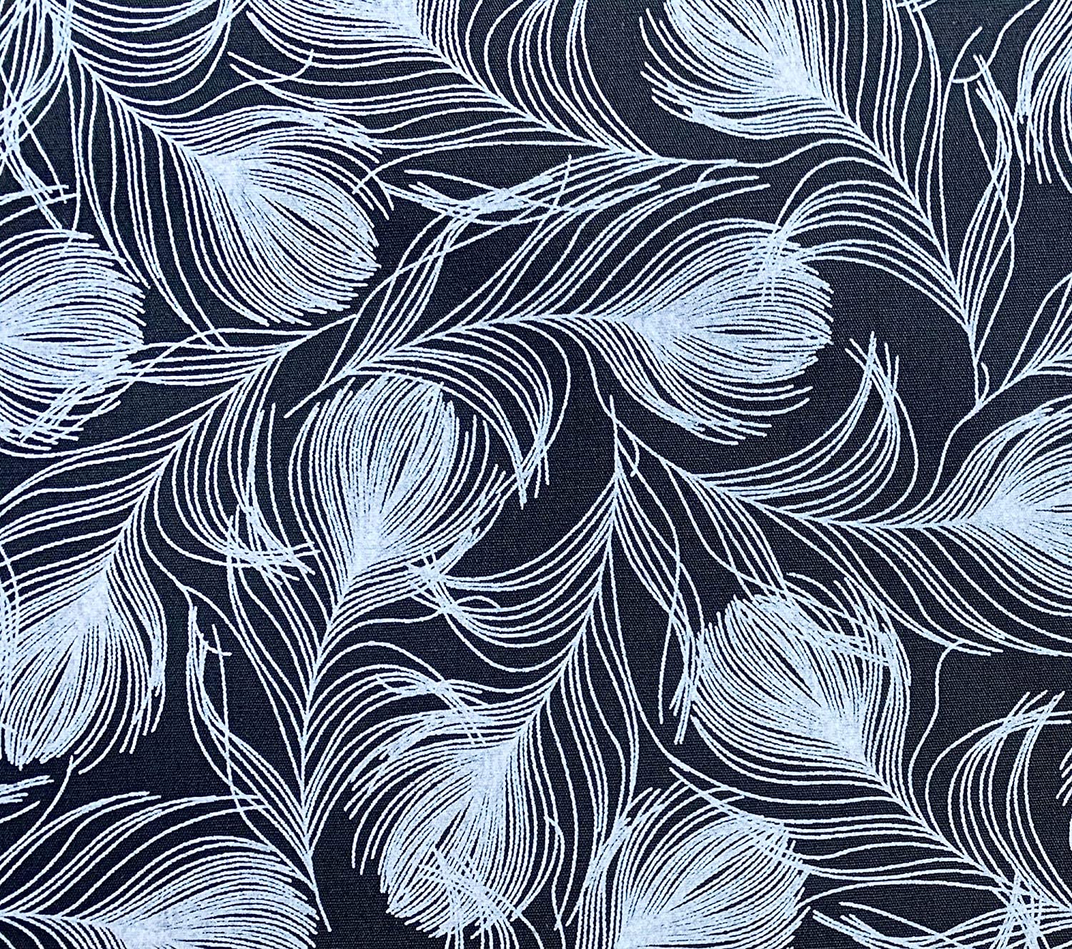 1M Feathers on Black 100% Cotton Poplin Fabric Width: 110cm (45 inches)