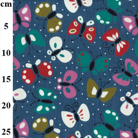 1 Metre Butterfly Denim 100% Cotton Fabric 147cm Width